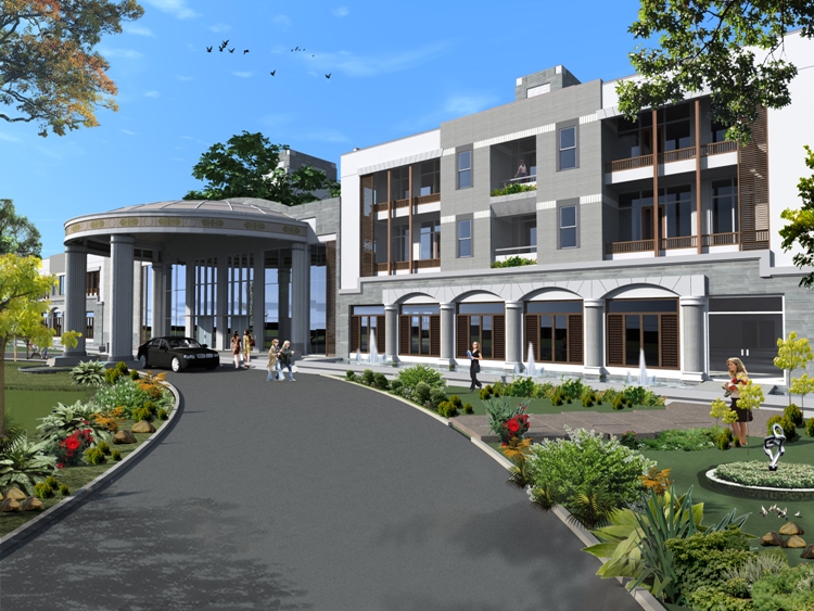 Building C with indoor badminton court, squash at lower level, SPA on ground floor and suit rooms and Presidential suit rooms on upper floors.